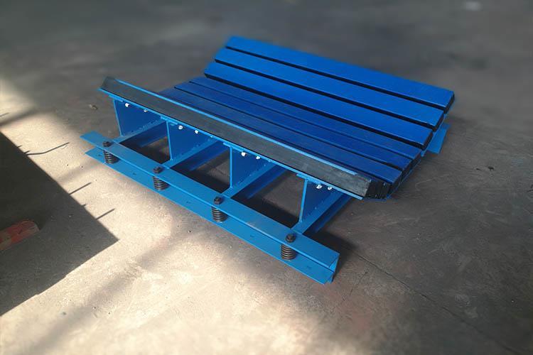 緩沖床的橡膠采用進(jìn)口天然橡膠、橡膠彈性高、含膠量大、橡膠密實(shí)度高、抗拉強(qiáng)度大、能大程度上吸收下落物料的沖擊力,可有效的避免物料下落時(shí)對(duì)輸送帶的沖擊。緩沖床床體表面采用高耐磨分子材料,分子量大于650萬(wàn),光滑表面,摩擦系數(shù)小,耐磨性好,使得輸送帶運(yùn)行時(shí)的摩擦力降到很低,廣泛用于礦山開采,礦井下巨型煤塊輸送。