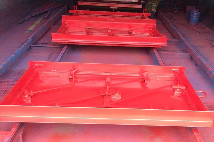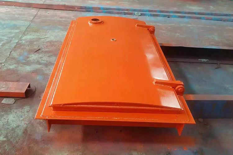 避難硐室密閉門使用對(duì)稱的方式進(jìn)行安裝,它的每一個(gè)安裝件都是使用鋼材料來焊接成的。避難硐室密閉門的門扇是由井字結(jié)構(gòu)來進(jìn)行焊接的,反風(fēng)的主要裝置是采用鋼管來插拴的,安裝的時(shí)候在合頁處涂上潤(rùn)滑油,保證使用的靈活性。斜風(fēng)井防爆門關(guān)門時(shí),各部件反向擺動(dòng),到關(guān)閉狀態(tài)時(shí)成矩形狀態(tài)。